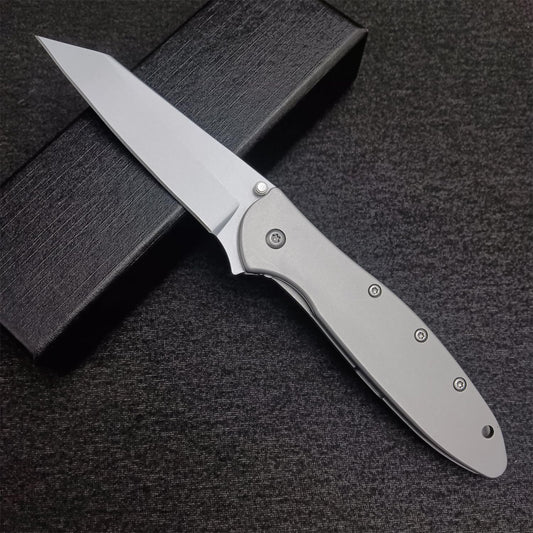 Assisted Opening 1660R Flipper EDC Pocket Knife, 3" Sandvik 14C28N Reverse Tanto Blade, Stainless Steel Handle, Dual Lock System, Outdoor Folding Knife For Men