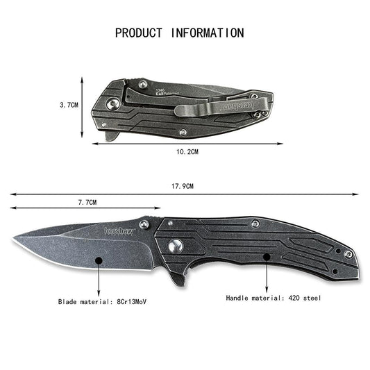 KERSHAW Outdoor Mini Camping 6061-t6 Aluminum, Black Anodized, Survival Knife Multifunctional Outdoor Tactical Rescue Tool Folding Hunting