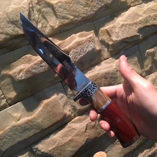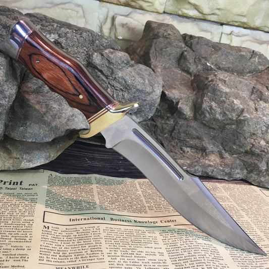 12.4 Inch Survival Fixed Blade Hunting Knives 5cr13 Blade Wood Handle Outdoor Tactical Straight Knife Jungle Camping Tools