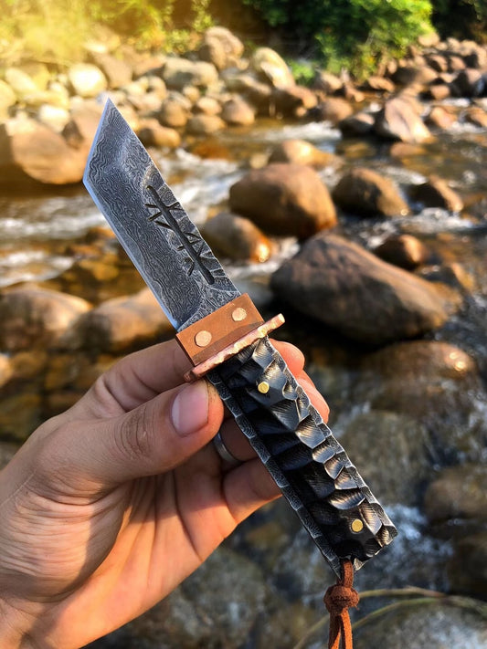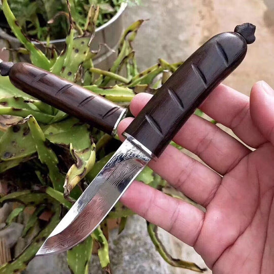 5.9 "ewood hand carved irregular grain Damascus knife tactical fixed blade emergency survival knife collection knife belt sheath