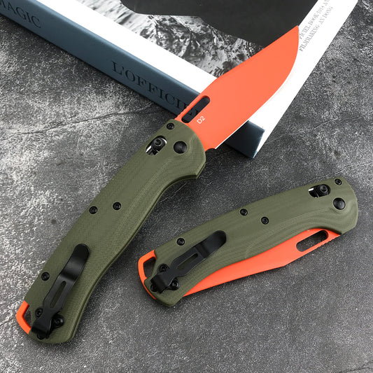 HUAAO GC001 Outdoor Tactical Folding Knife Quick Open Pocket Knife Green and Red Stripe G10 Handles Wilderness Hunting Knife Portable Fruit Knife Camping Knives