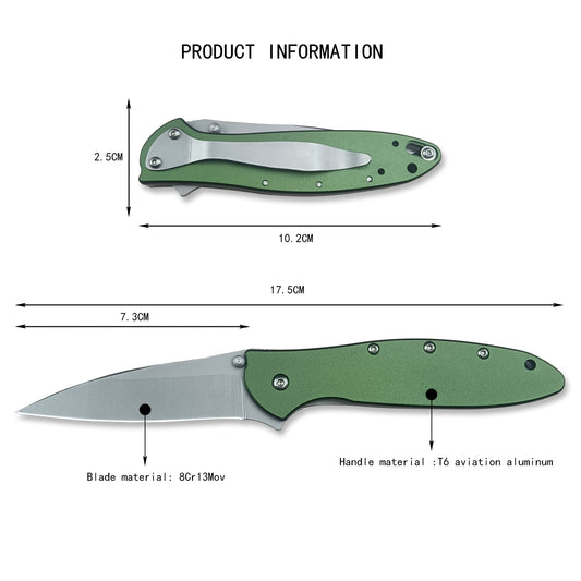 Olive Chive Folding Pocket Knife, 2.9 Inch 8Cr13Mov Manual Studs Open Blade and Aluminum Handle, Multi Tool for Camping,Hiking