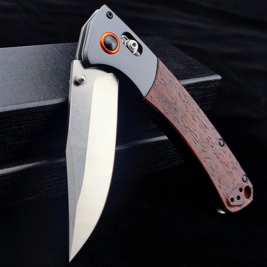 EDC Folding Pocket Knife, D2 Blade, Wood Handle, Thumb Stud Manual Open Camping Folding Knife for Outdoor (Orange)