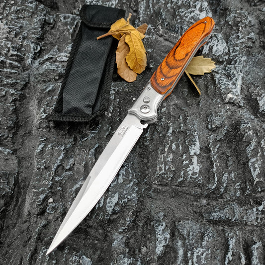 12" Large Pocket Knife,Multifunctional Folding Knives,Gifts for Men,Stainless Steel Blade and Wooden Handle,Portable Tool for Camping,Hiking