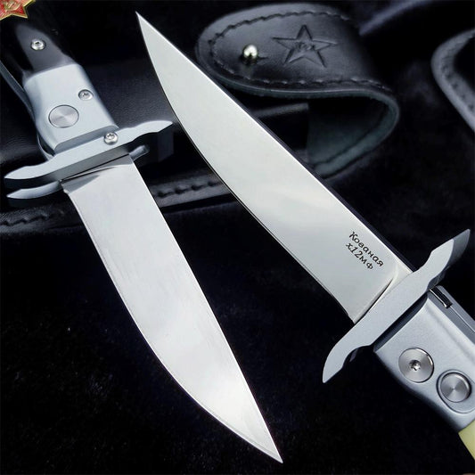 2023 NEW Finka NKVD Auto Out of The Side Knife 3.74" Mirror Polished Blade Aluminium Inlay Resin For Aviation Handle With Leather Sheath Edc Survival Tactical Blade Spring Assisted Pocket KnifeRegular price $49.90 USDRegular priceUnit price per$168.00 USDSale price $49.90 USDSale