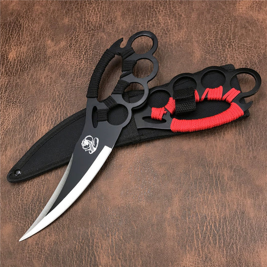 Tactical Brass Knuckle Style 10 inch Fixed Knuckle Knives Outdoor Hunting Camping Tool Multipurpose Portable Rescue Self-defense Ring Knife