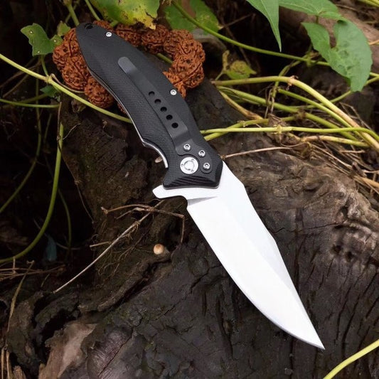 Black G10, vacuum oil quenching heat treatment tactical survival folding knife, corrosion resistant camping hunting outdoor knife