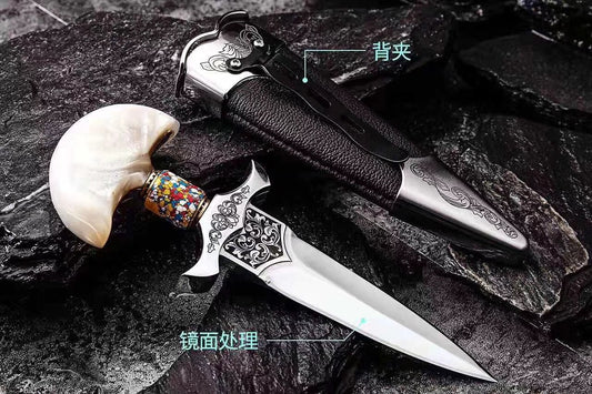 Tactical EDC Dagger Knife Double Edged Military Rescue Knives Self Defense Sword Bayonet Sharp Blade/No edge