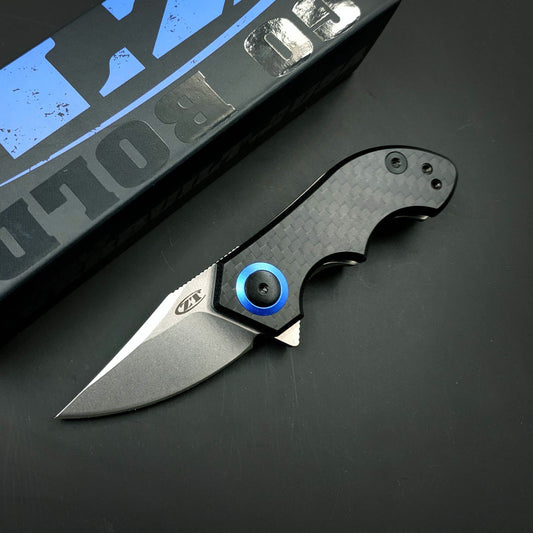 ZT ZERO TOLERANCE0707 Flipper Knife Folding Pocket Knife 3.5" CPM-20CV Drop Point Blade, 3D Machined Carbon Fiber and Titanium Handles