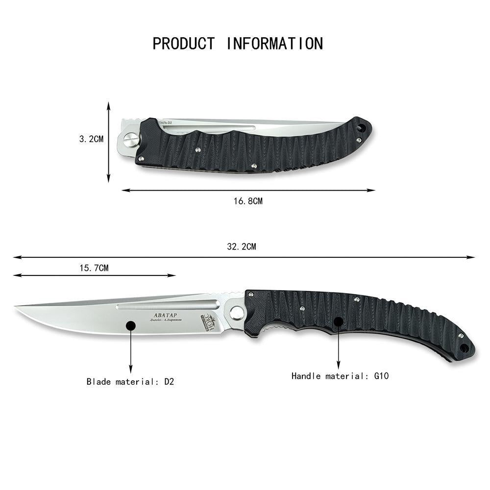 12" Hokc ABATAB Knife D2 Blade BLACK G10 Folding Pocket Knife EDC Hunting