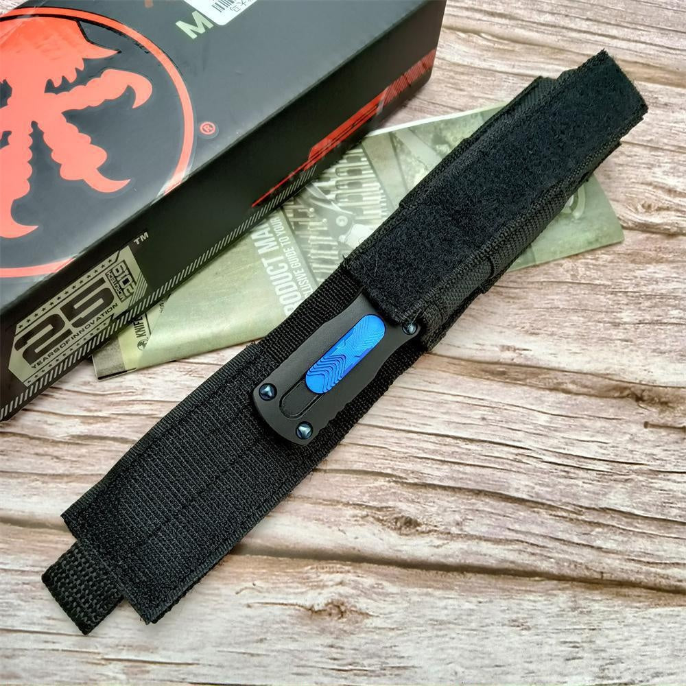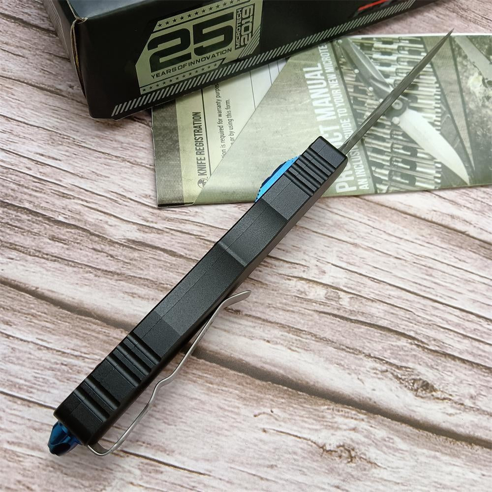 2023 Microtech Dirac Switchblade Automatic Knife, 3" Damascus Blade Aluminum Alloy Handles with A Cover Firing Slider and Glass Breaker