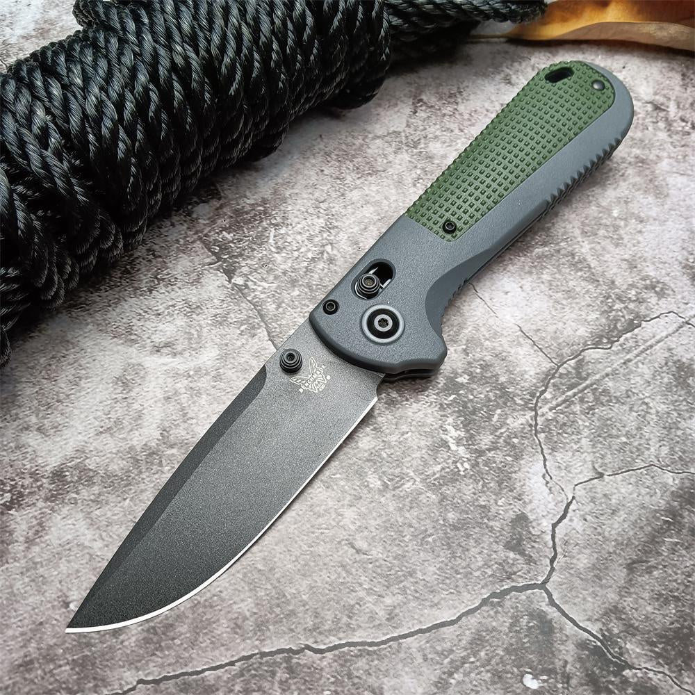Benchmade 430 Redoubt AXIS Folding Pocket Knife 3.55" CPM-D2 Graphite Black Plain Blade, Gray and Blue Grivory Handles Benchmade 430BK Outdoor Tactical Camping Self defense EDCTool