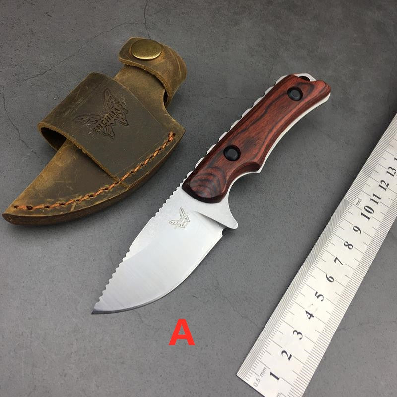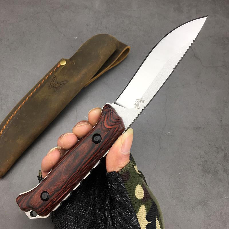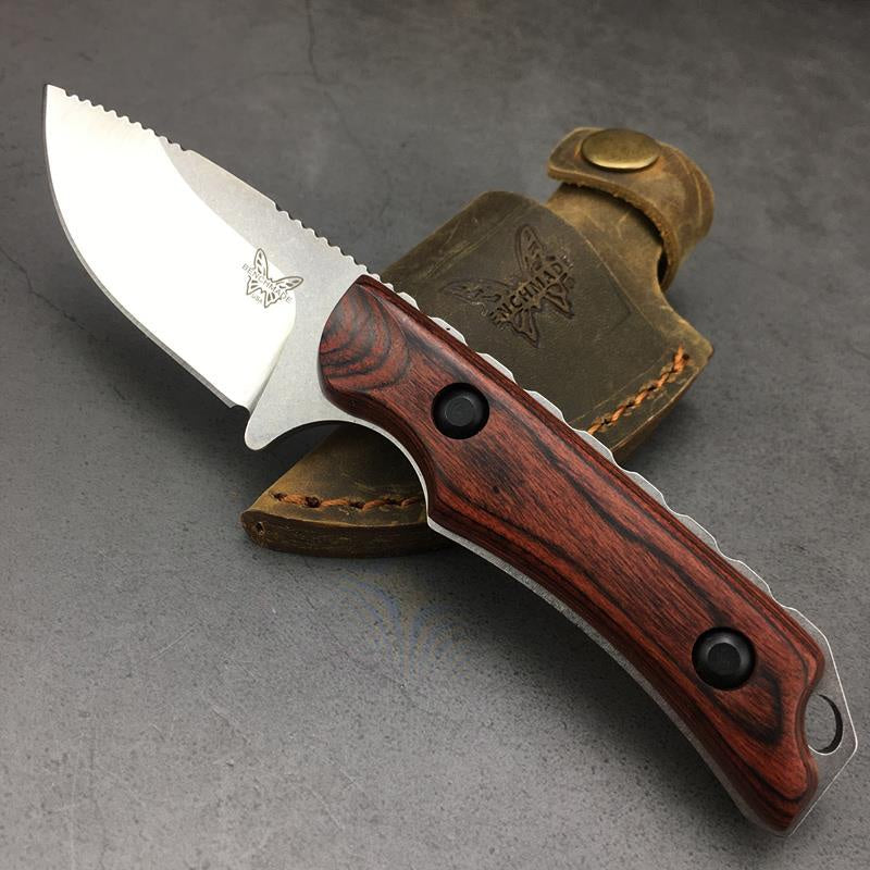 Benchmade Hunt Hidden Canyon Hunter Fixed Blade Knife 2.79" S30V Drop Point, Stabilized Wood Handles, Leather Sheath - 15017