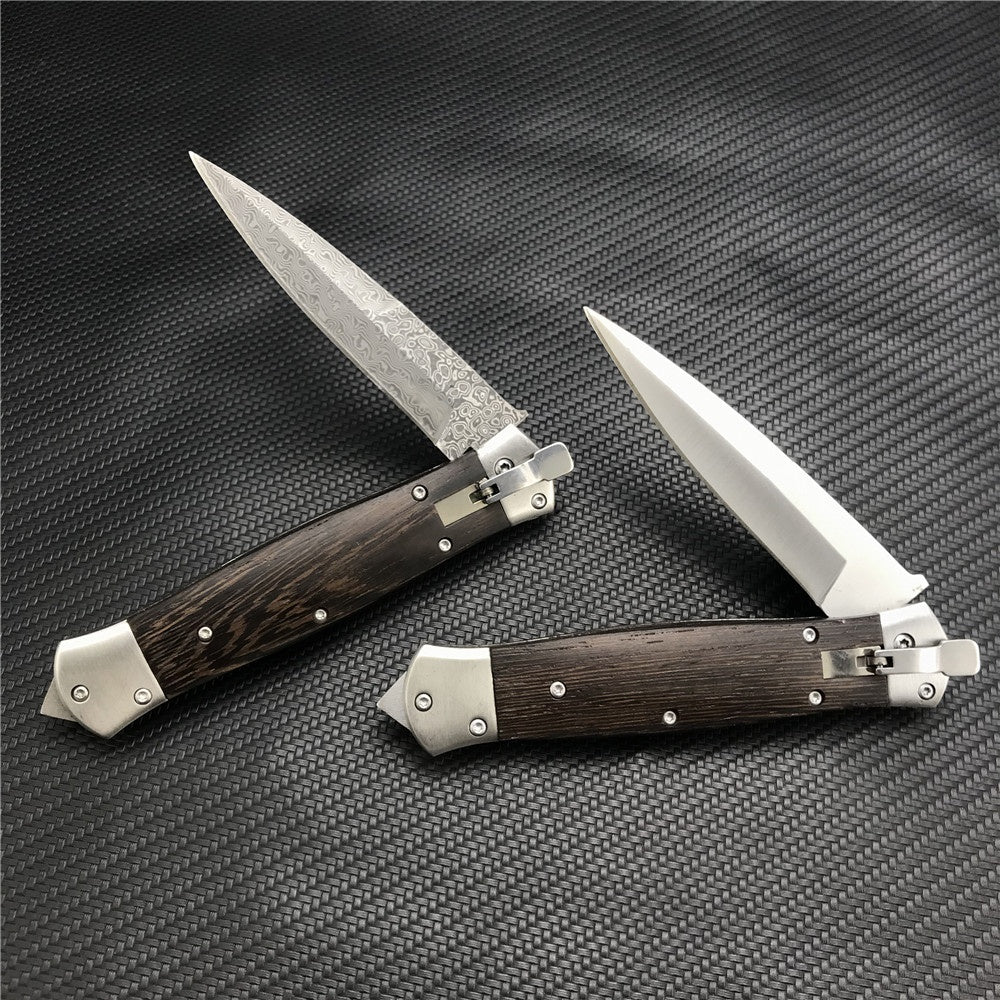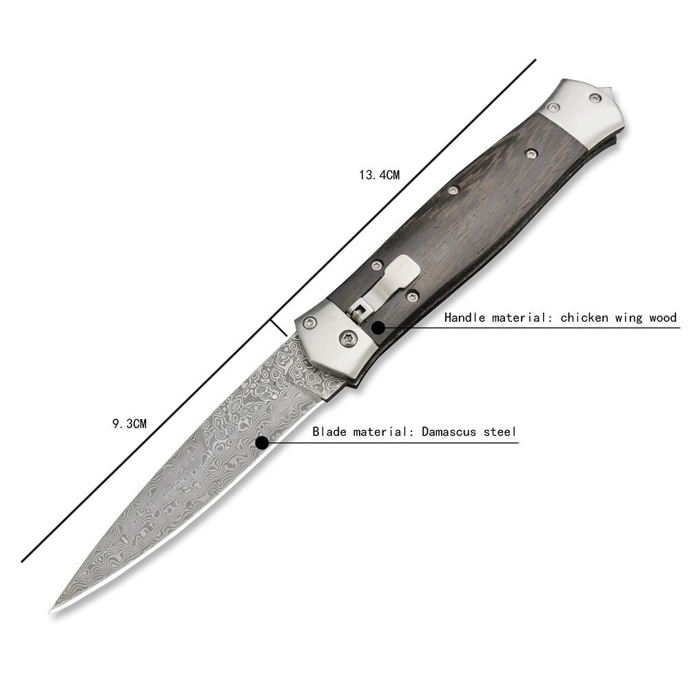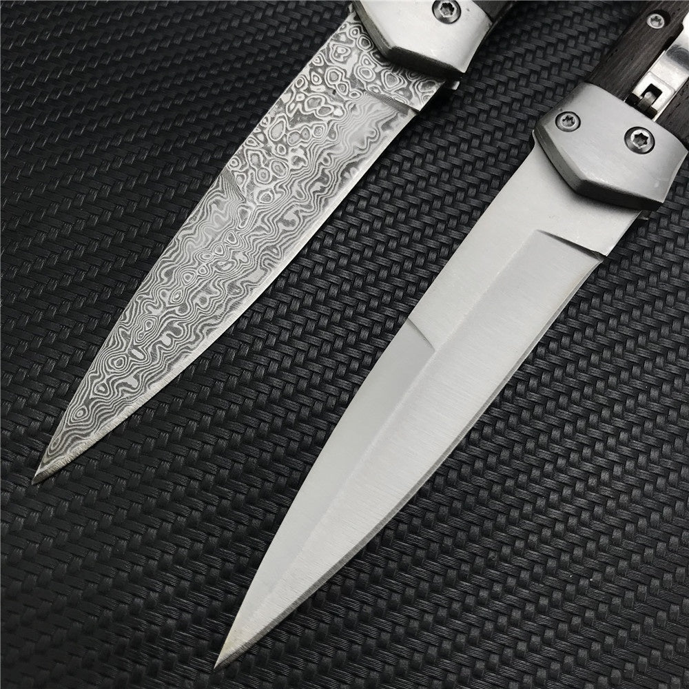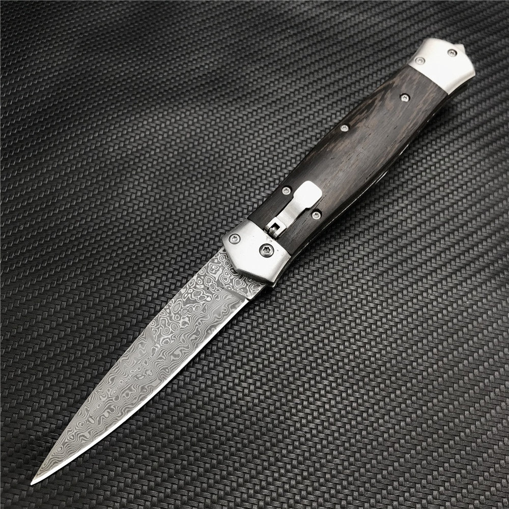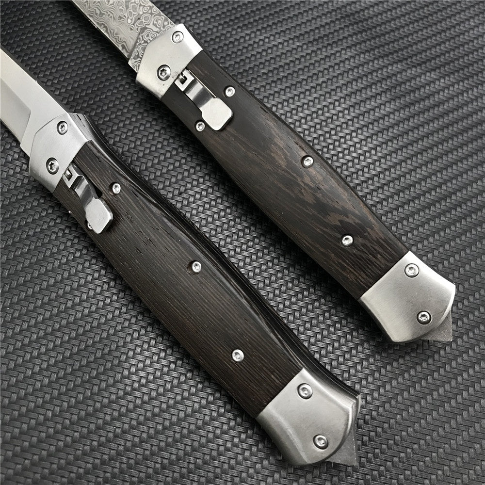 Damascus Steel Stiletto KnifeTactical Gear AUTO Folding Blade EDC Survival Knives Spring Assisted Knife Outdoor Camping Combat Hunting Knife