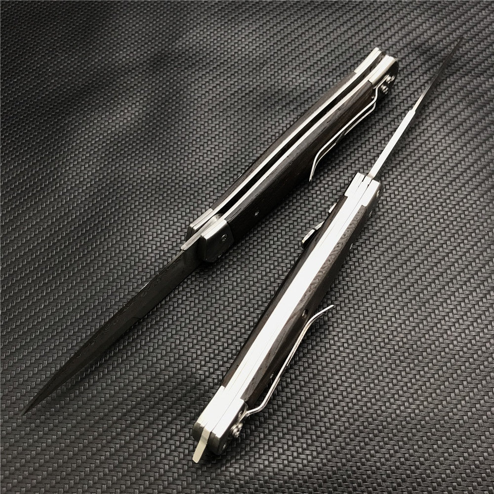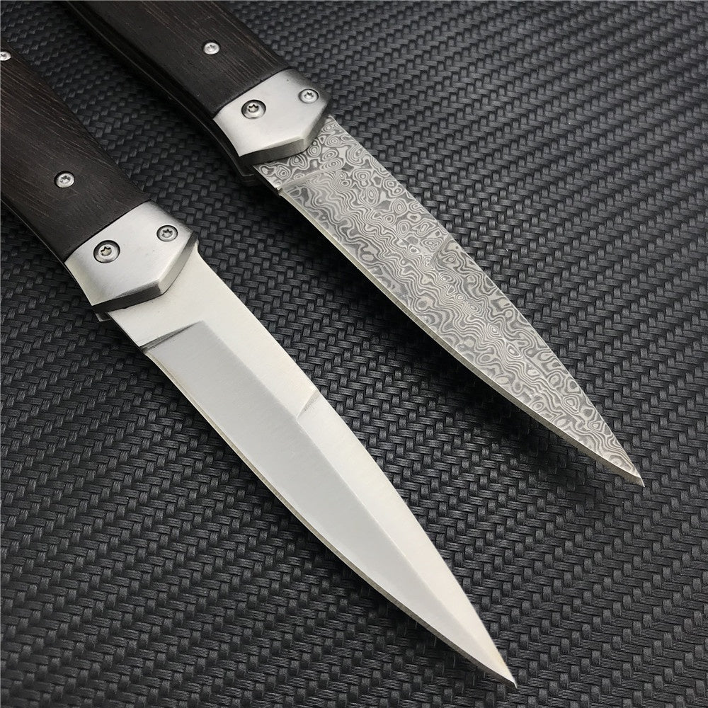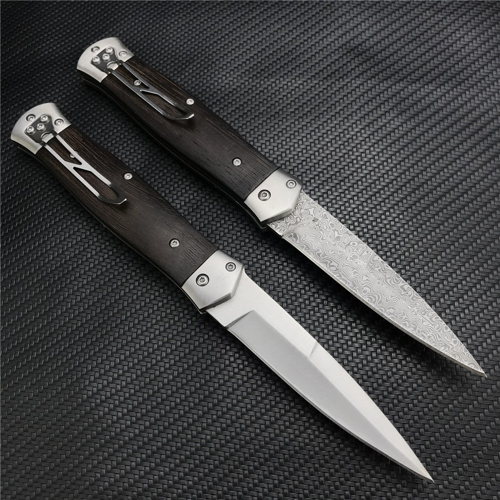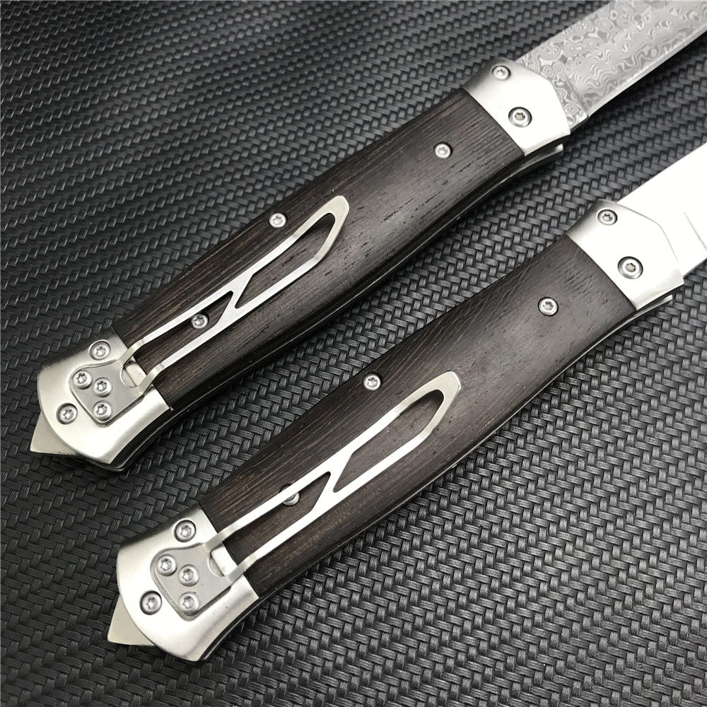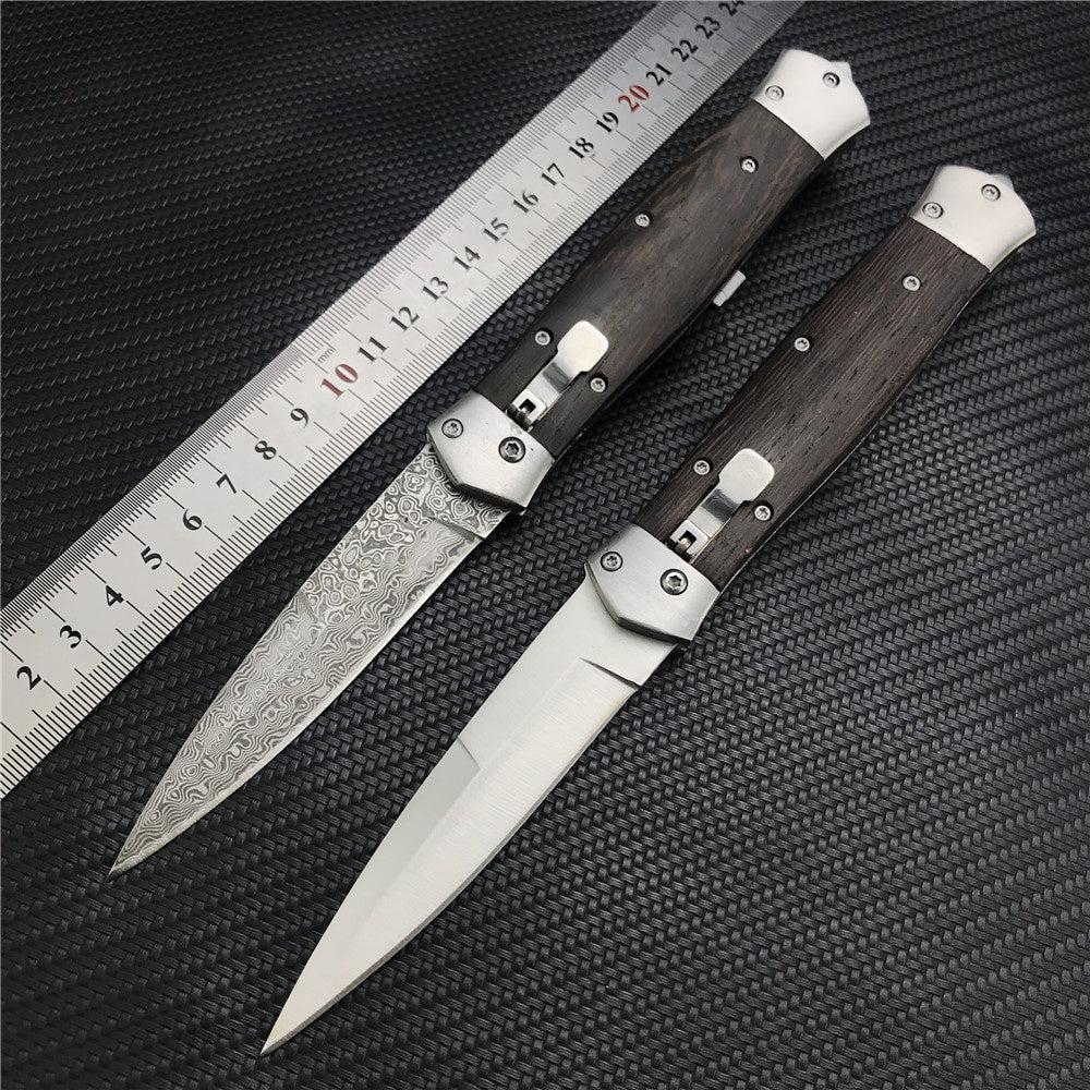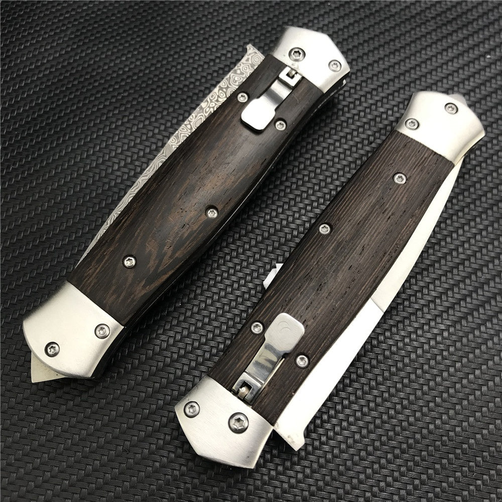 Damascus Steel Stiletto KnifeTactical Gear AUTO Folding Blade EDC Survival Knives Spring Assisted Knife Outdoor Camping Combat Hunting Knife