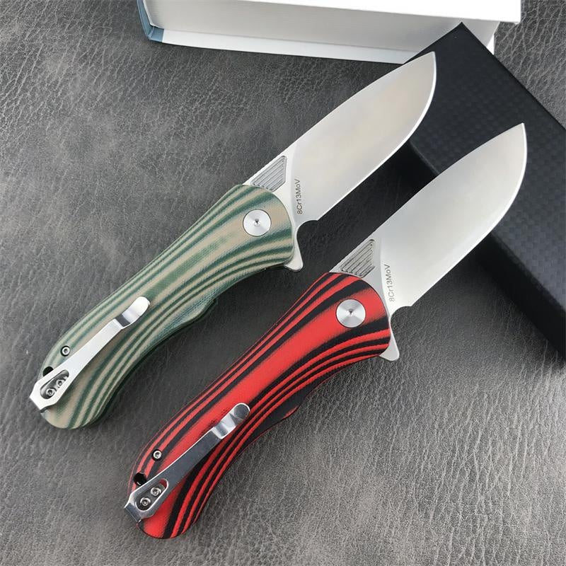 HUAAO GC001 Outdoor Tactical Folding Knife Quick Open Pocket Knife Green and Red Stripe G10 Handles Wilderness Hunting Knife Portable Fruit Knife Camping Knives