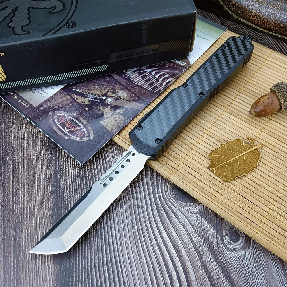 Microtech Carbon Fiber Handle OTF Out The Front Adjustable Blade Knife High Hardness D2 Stainless Steel Work Sharp Fishing Hunting Cutting Outdoor Spring Assisted Dagger Knife Survival EDC Tools