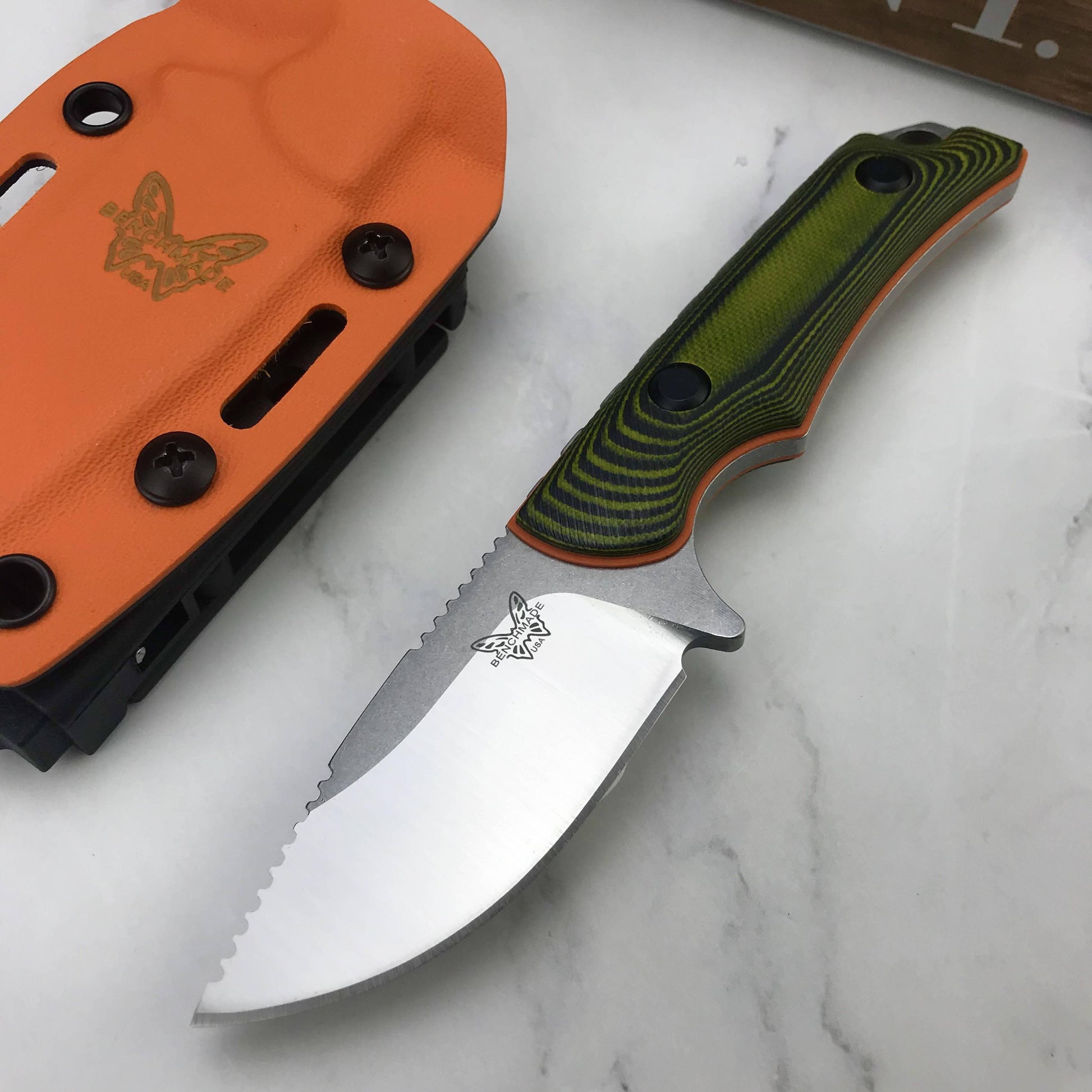 New Benchmade 15017-1 Hunt Hidden Canyon Hunter Fixed Blade Knife , Richlite/ Green G10 Handles,2.79" 8Cr13Mov Drop Point knives Kydex Sheath