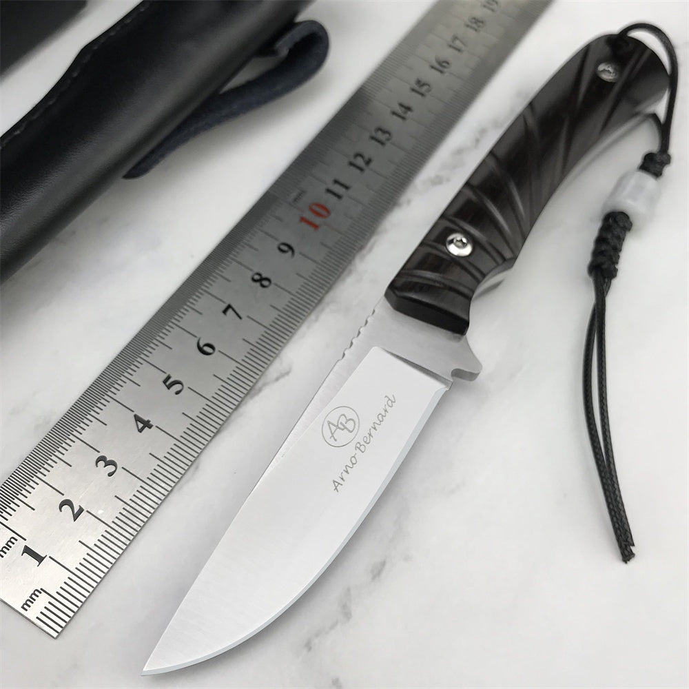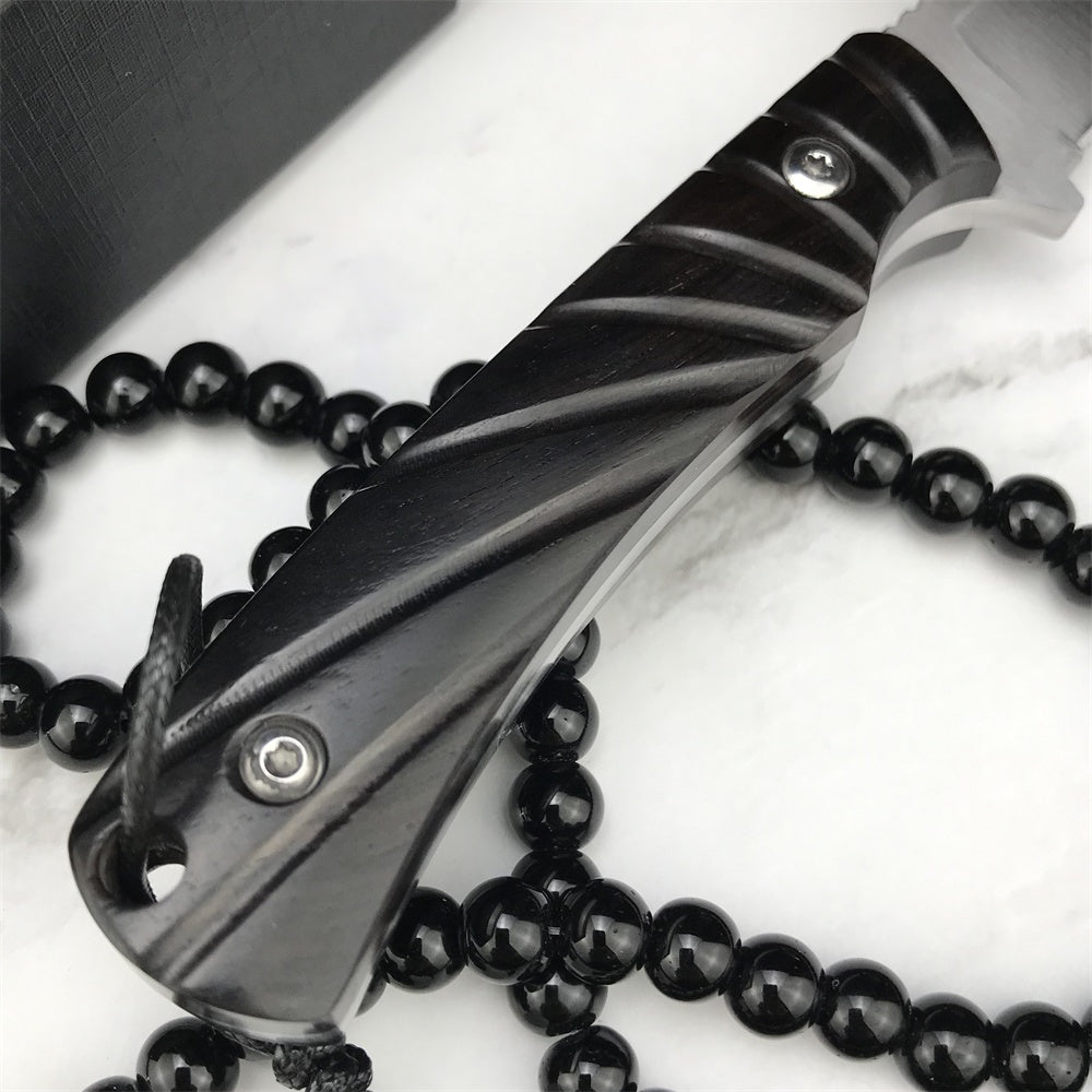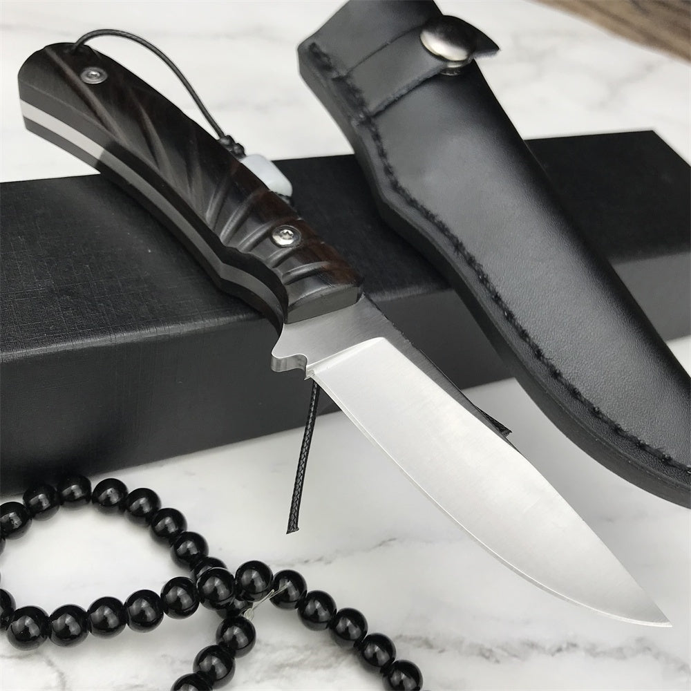 Stainless Steel Tactical Fixed Blade Knife Ebony Handle Survival Rescue Tools Hunting Knives Corrosion Resistance Hunting Combat Outdoor Tool Gift Leather Sheath