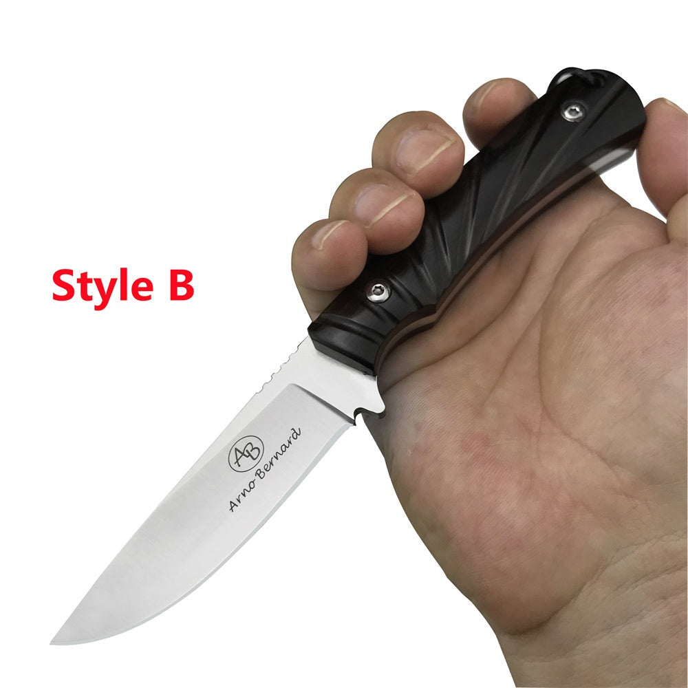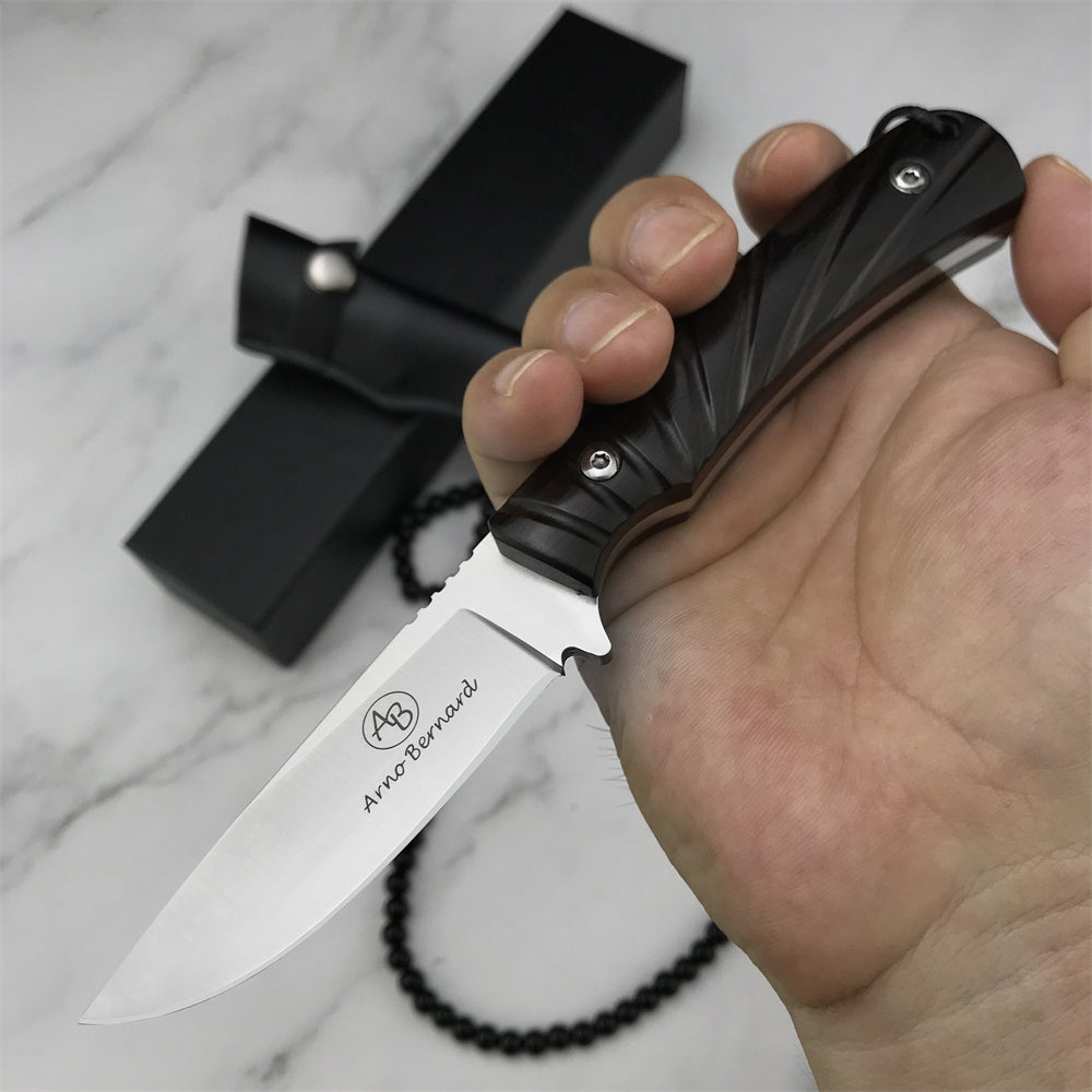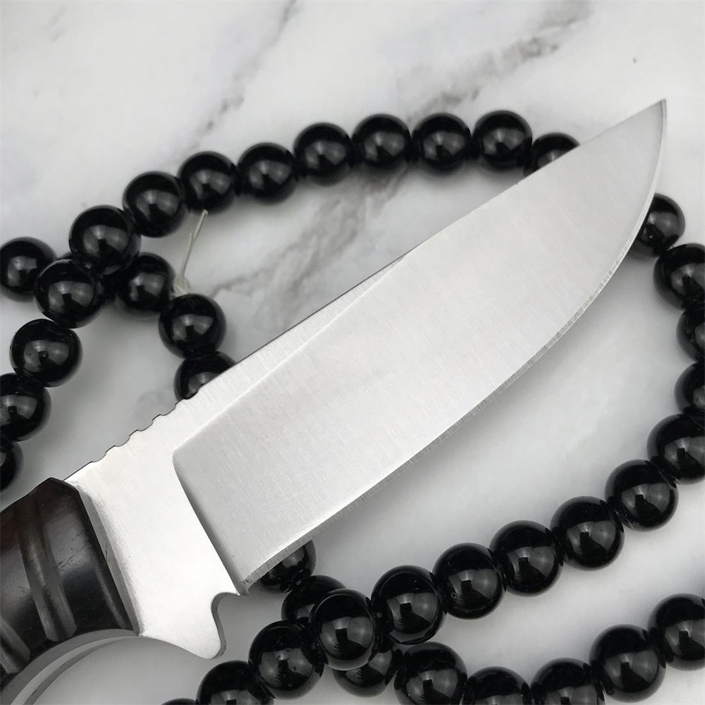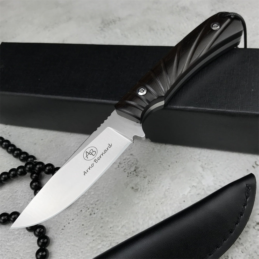 Stainless Steel Tactical Fixed Blade Knife Ebony Handle Survival Rescue Tools Hunting Knives Corrosion Resistance Hunting Combat Outdoor Tool Gift Leather Sheath