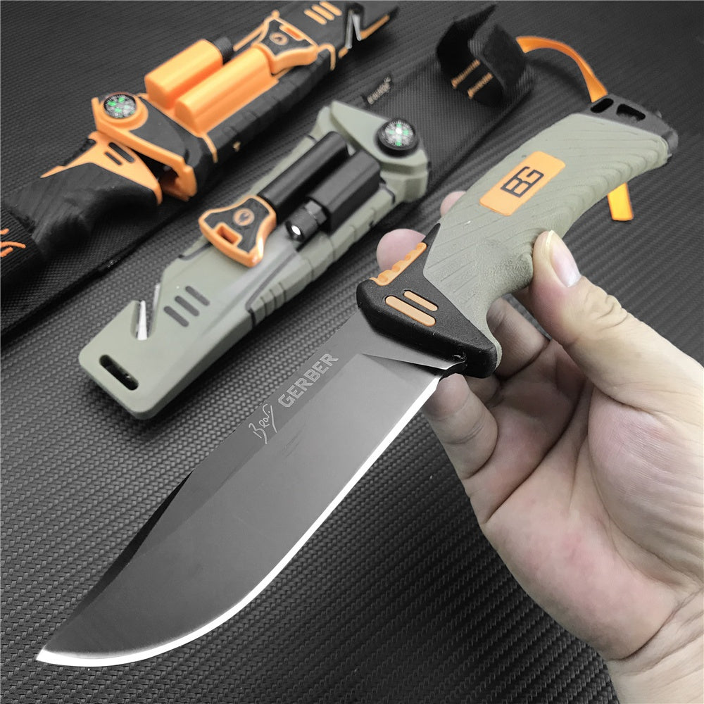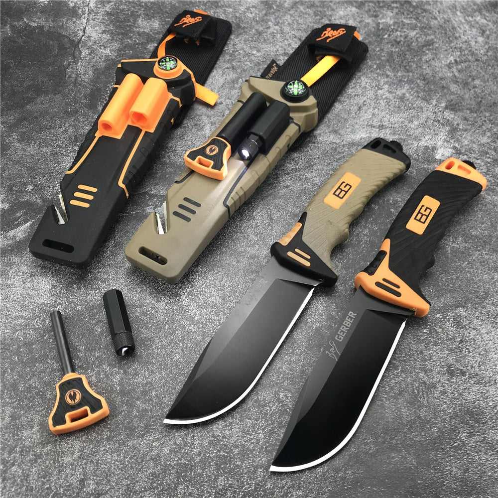 Multifunctional scabbard: shout flint, whistle. LED flashlight, diamond sharpener